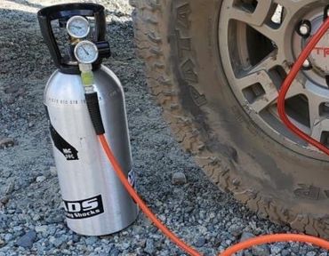 Make your own budget Co2 Tire System. Find an old beverage co2 tank, scrap up some parts from the shop, and get yourself a FIXED 150PSI SOURCE regulator and you are ready for the trail. Buller proof, nothing to break, nothing to damage - just turn on the cylinder and inflate tires fast.