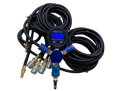 Your choice of black, yellow, blue and red reinforced braided poly coiled hose with heavy duty brass quick connects. Purpose built 300PSI maximum pressure digital tire inflator for extremely accurate tire filling pressures.
